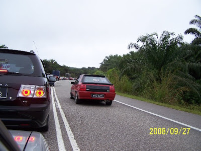 Em, pasal kesesakan jalan raya, kali ini kami terkena tetapi tak seteruk dua tahun lepas. Dua tahun lepas kami keluar rumah di Damansara Damai seawal 3.00 pagi. Ingatkan dah awal, rupa-rupanya, 2 kilometer nak exit ke Jalan Bentong, jalan dan sesak teruk. So, kami try redah lalu ikut Lanchang. Meredah kawasan hutan dan ladang akhirnya keluar atas pada Raub.