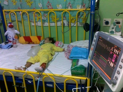 - Anak beliau sekarang ni dimasukkan ke Wad Hospital USM Kubang Kerian. Apa yang saya faham dari perbualan telefon sebentar tadi, HUSM tak ada kepakaran pembedahan jantung yang melibatkan 4 injap. IJN pun tak terima sebab anak beliau mengidap down sindrom.