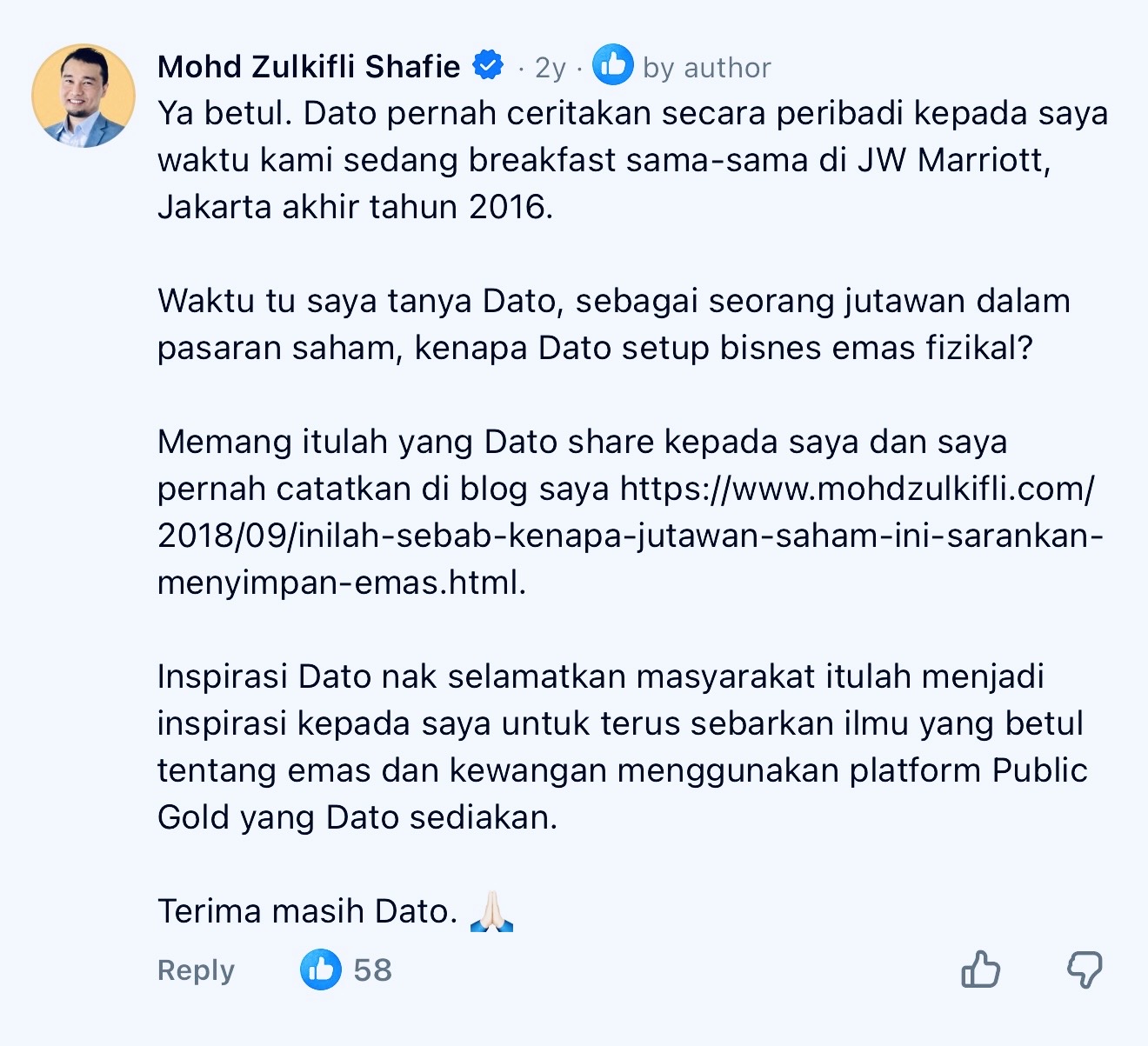 >> Coretan asal Founder Public Gold di Facebook beliau