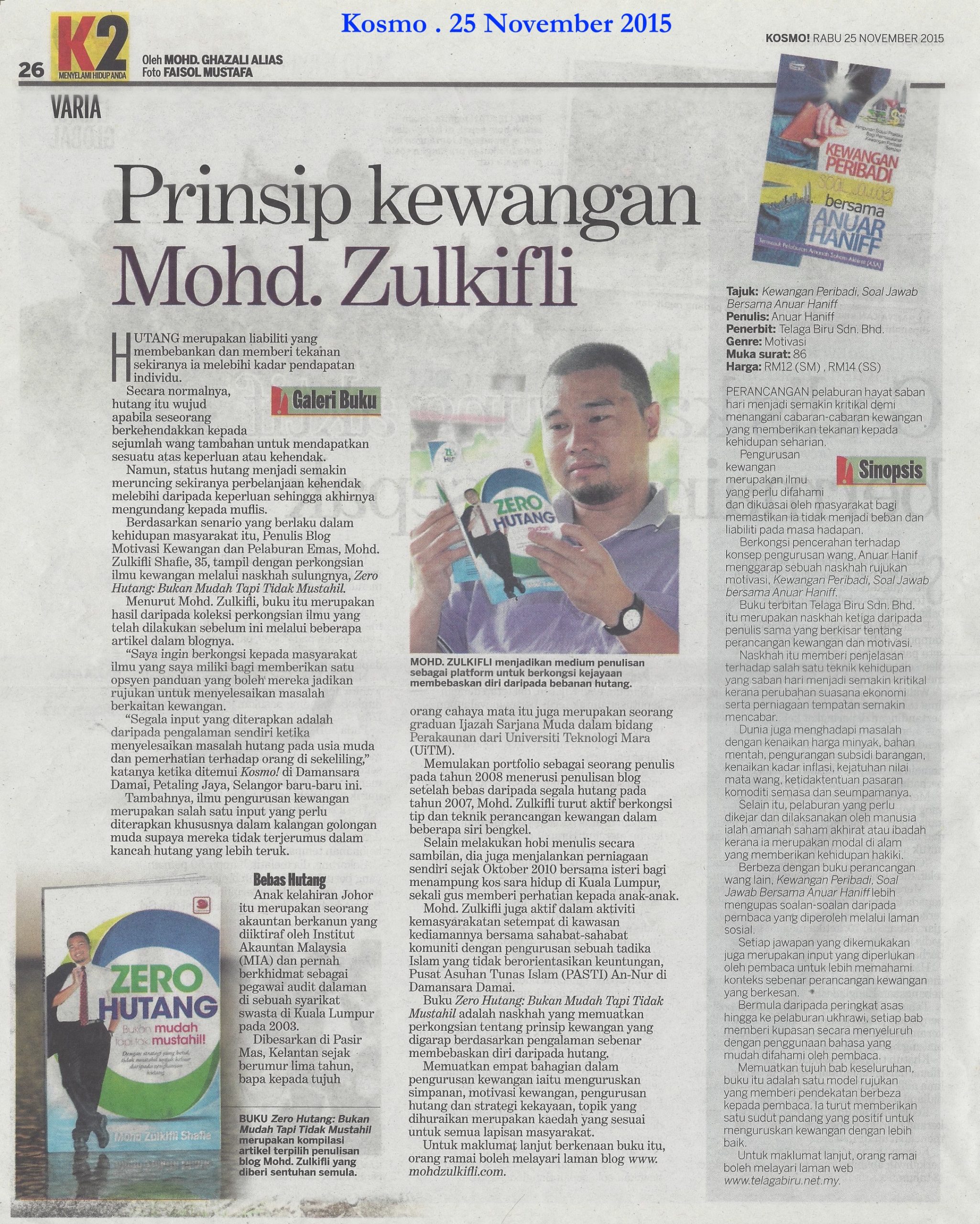 Penulis buku bestseller; Wang Emas, dan Misi Bebas Hutang.