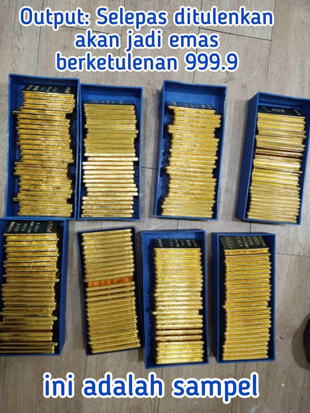 Kilang tu nanti membolehkan emas skrap (atau emas yang baru keluarkan dari lombong) ditulenkan jadi emas 999.9.