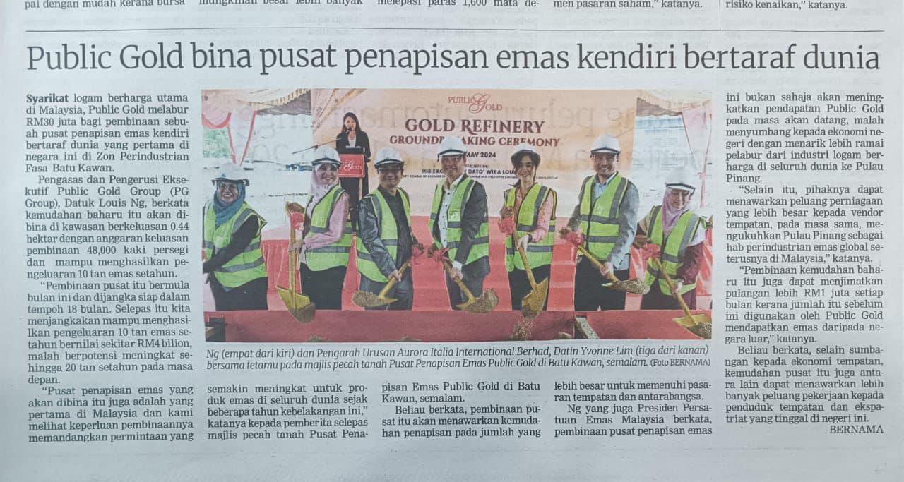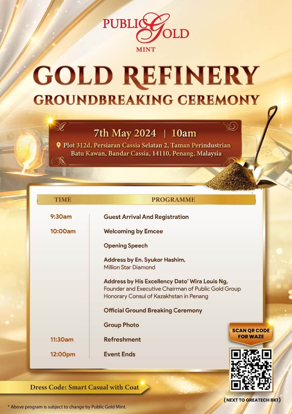Majlis pecah tanah hari tu sempena pembinaan kilang penulenan emas pada skala besar yang bukan sahaja sejarah buat Public Gold, tapi juga buat negara.