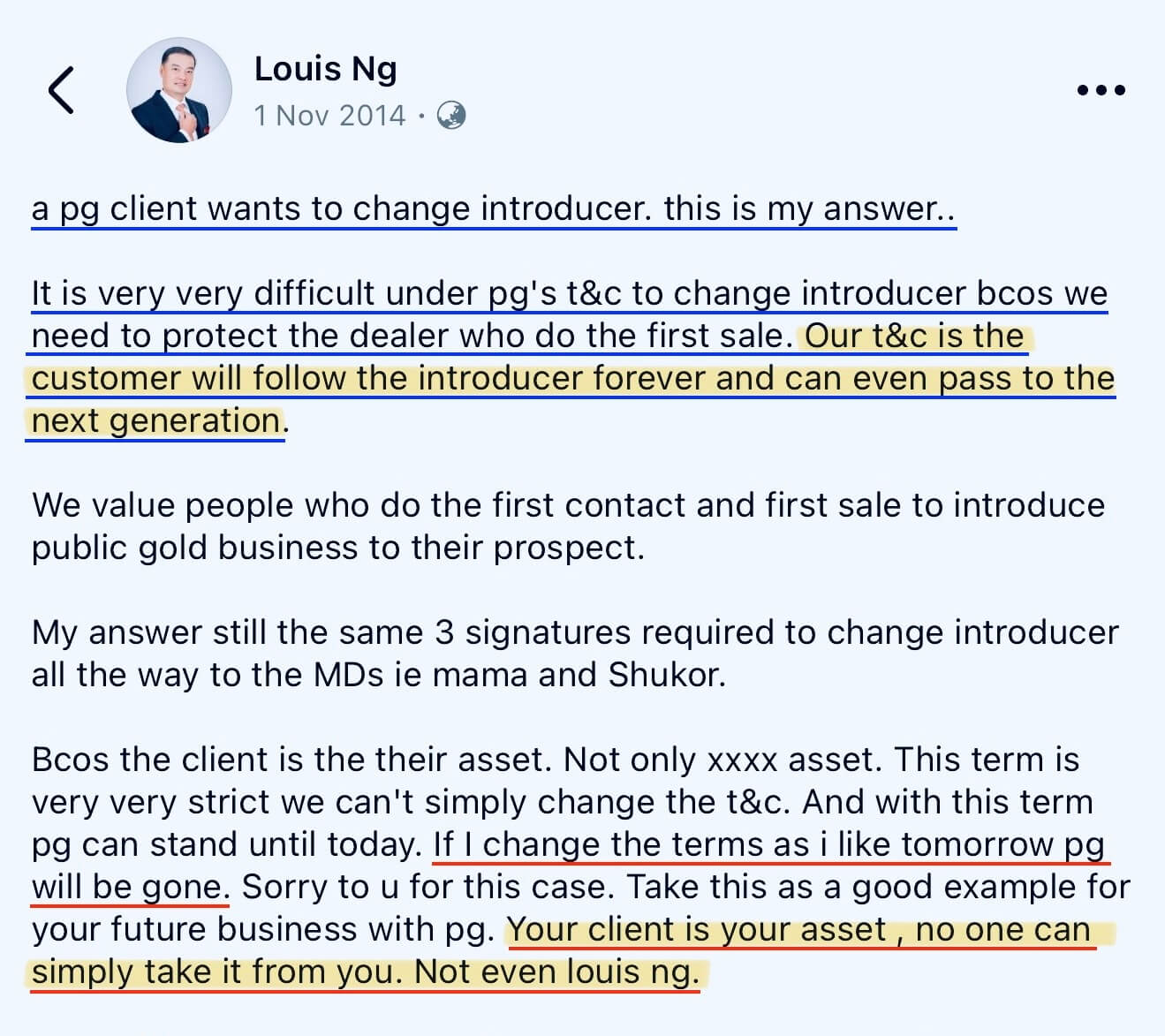 Itulah jaminan yang ditegaskan sendiri oleh #FounderPublicGold , Dato Seri Louis Ng.
