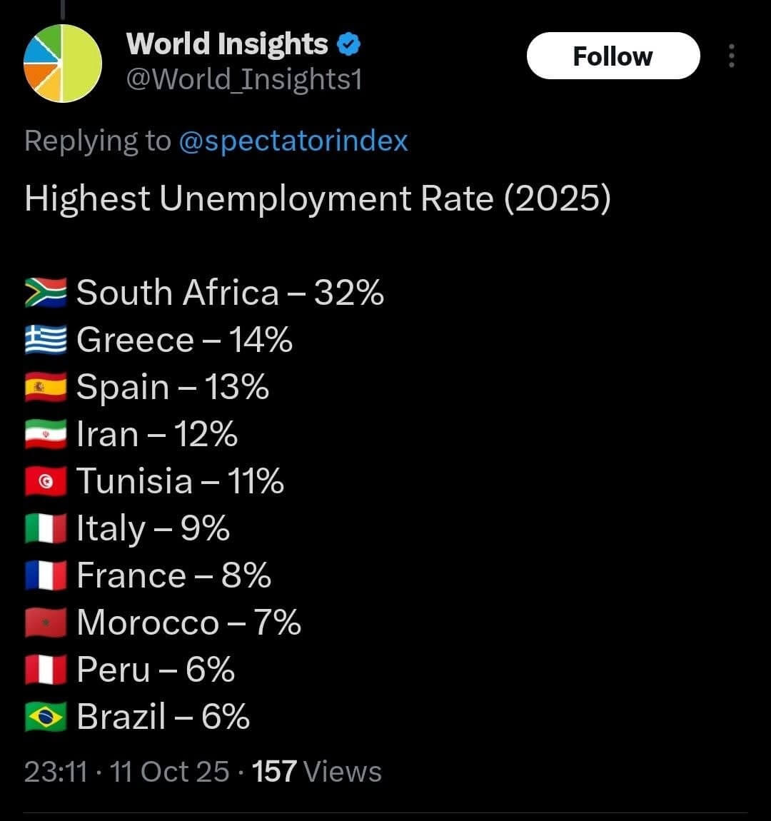 Rupanya South Africa negara yang kadar pengangguran tertinggi di dunia! Ini apa yang dishare oleh seorang yang letakkan comment di posting FB saya.