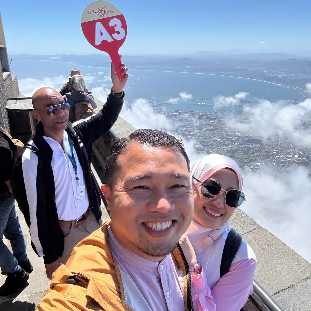 Itu antara ayat pertama yang keluar dari mulut Mr. Moses (foto belakang saya tu), tourist guide kami sebaik sahaja sampai di Cape Town.