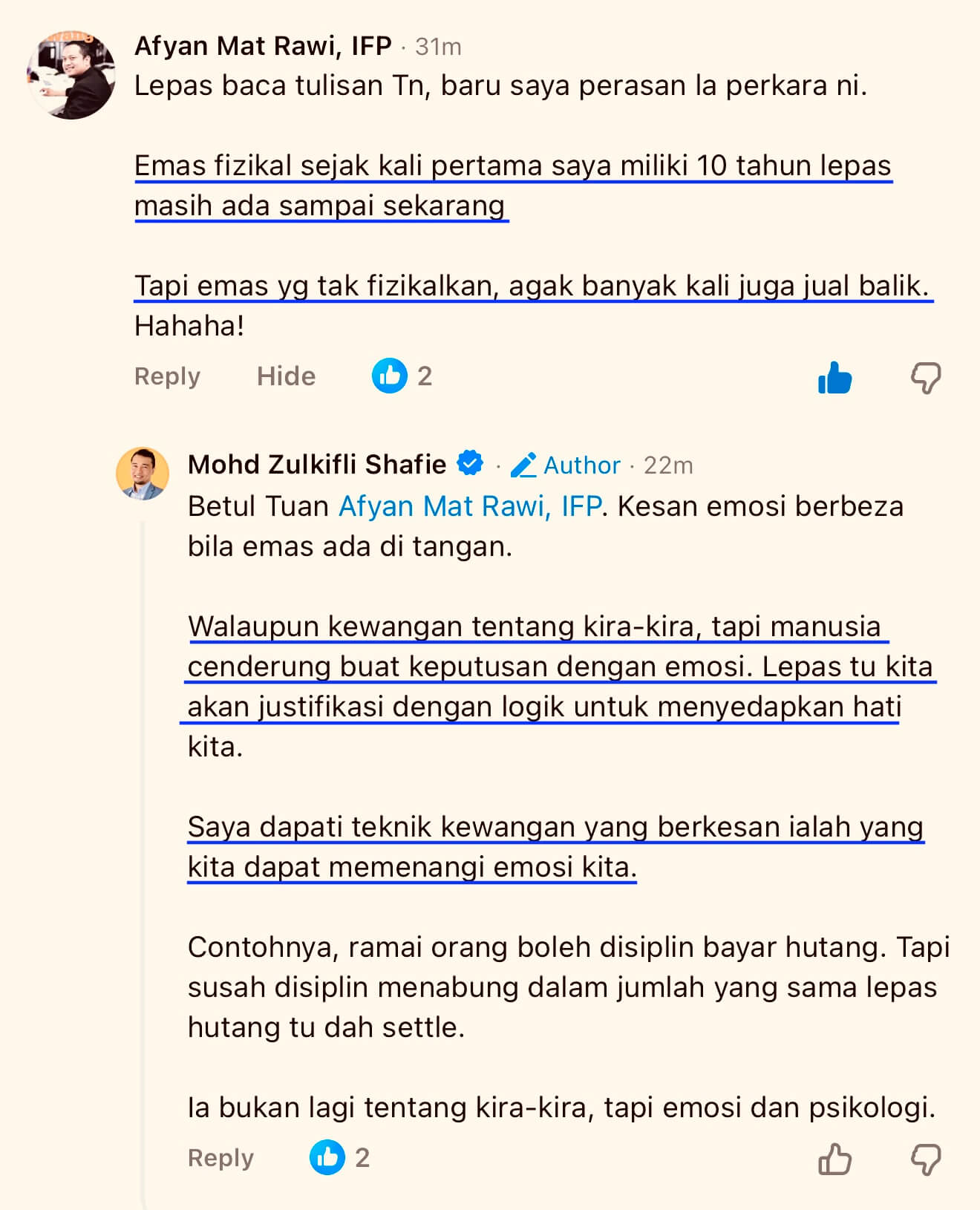 Sebab tu pakar-pakar emas dunia selalu tekankan - emas terbaik ialah emas yang ada di tangan kita sendiri. Yang boleh kita pegang, rasa, dan serahkan bila perlu.
