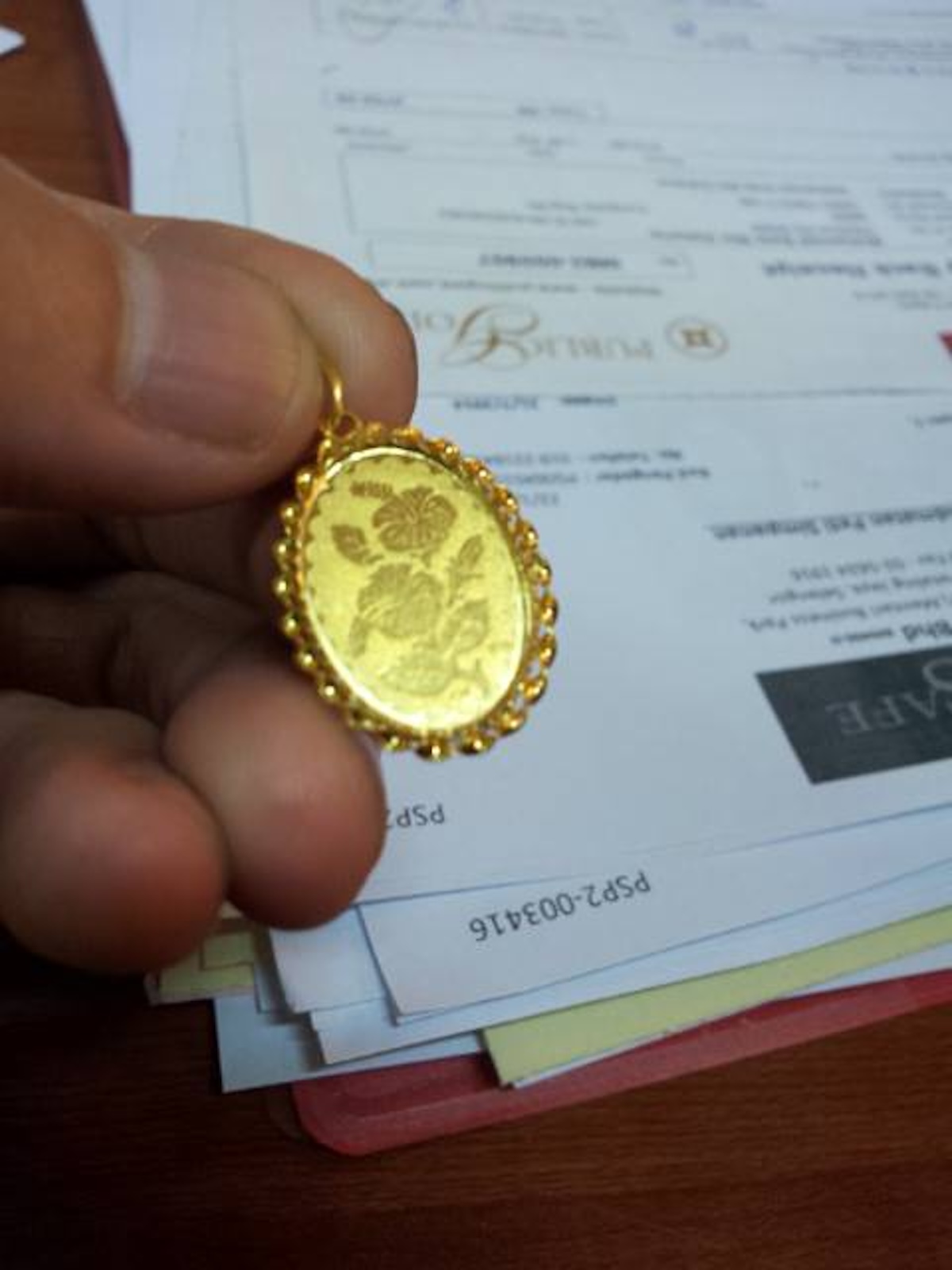 Ini antara barang kemas yang dia bawa - loket emas yang tertera cop 916.