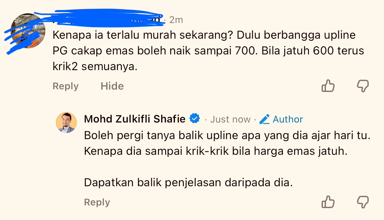 Saya bertanggungjawab dengan apa yang saya sampaikan tentang ilmu emas. Saya bukan influencer yang buat duit dengan dapatkan engagement murahan.